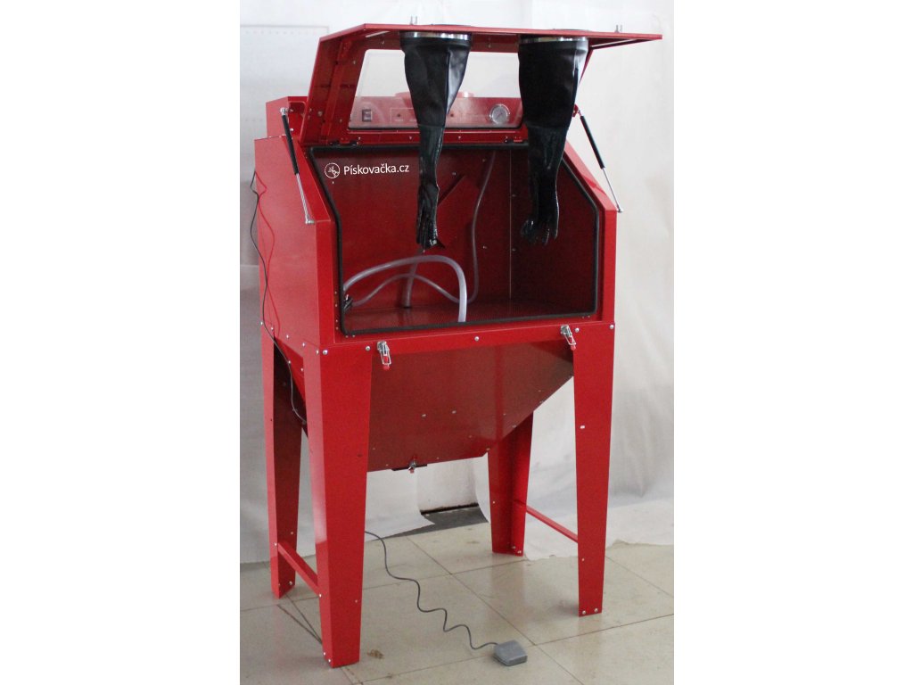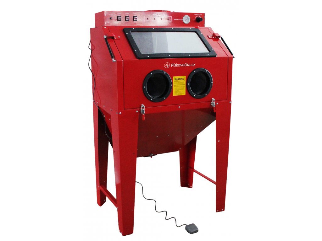 - proces pískování ovládán nožním pedálem pro stacionární trysku, druhá pískovací pistole se ovládá ručně